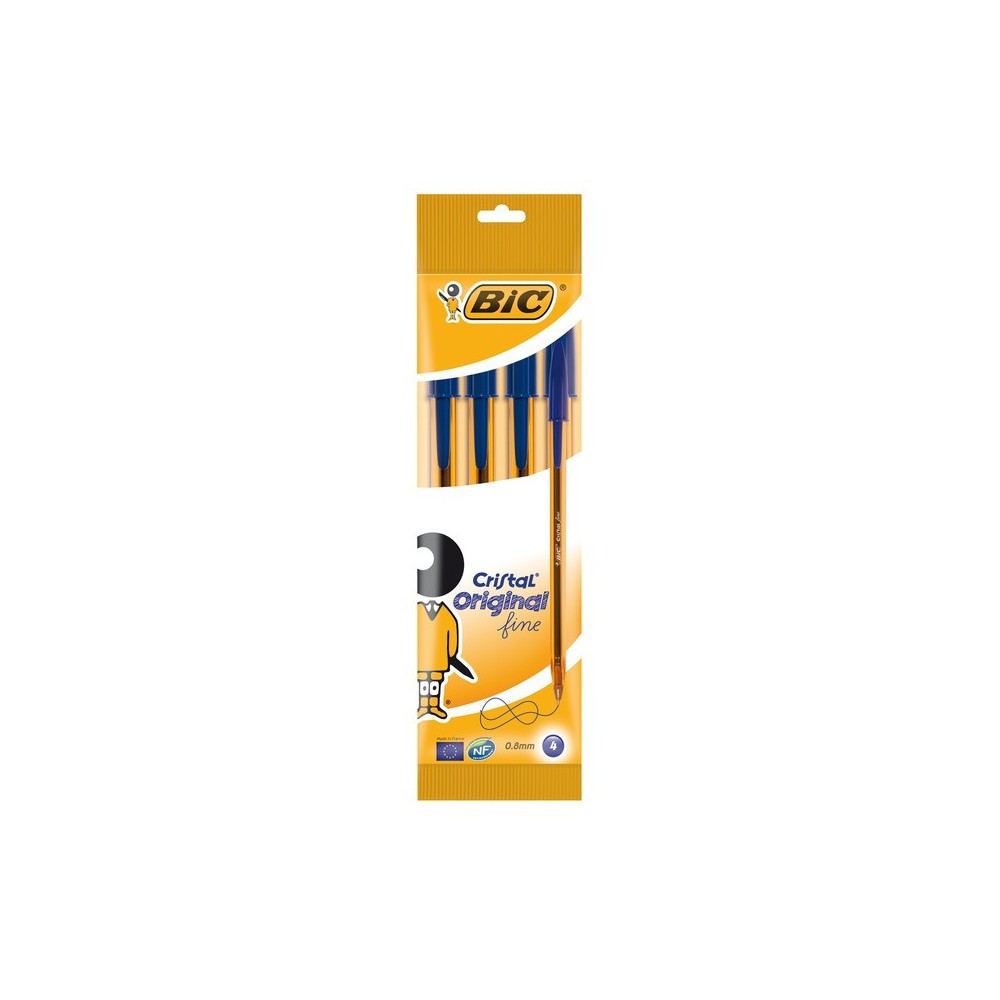BLISTER 4 BIC CRISTAL FINO AZUL