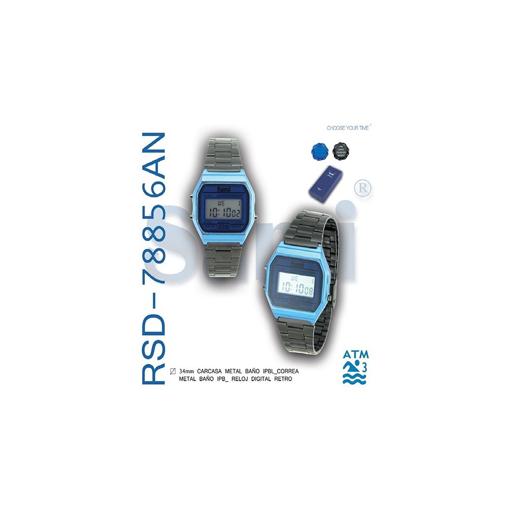 RELOJ SAMI LCD RETRO AZUL-NEGRO C/EST.
